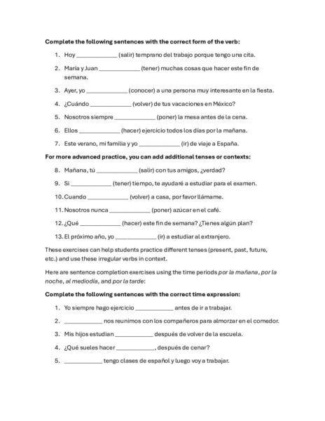 Hacer 10 frases usando los Go-Go verbs y el verbo conocer, recuerda usar las partes del día, por ejemplo, Pongo música por la tarde @jane-pepin