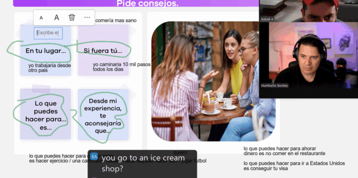 Completar las frases y hacer consejos de vida; si fuera tu, iría a una tienda de helados.