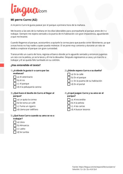 Tarea @Lally : Lee el siguiente texto y responde las preguntas. También adjunto el link: Mi perro Curro – Texto en español (lingua.com)